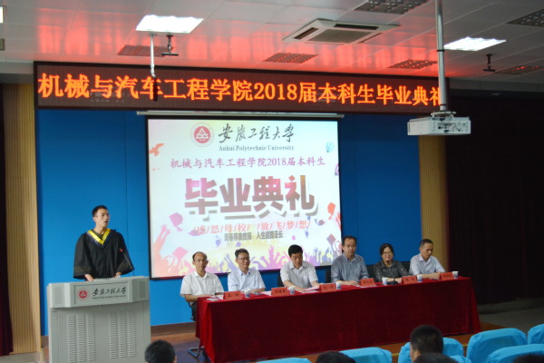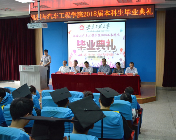 毕业典礼在雄壮的国歌声中拉开了序幕,伊长文宣读6165金沙总站官方入口2018届安徽省普通高等学校品学兼优毕业生名单与安徽工程大学优秀毕业生名单。随后,校党委书记刘宁致辞,对学院毕业生顺利学业、即将踏上新征程表示衷心的祝贺。在离别之际,刘宁书记对于即将踏入社会的毕业生悉心叮嘱了三点:一是不忘初心、坚持梦想;二是励志前行、勇于担当;三是求真力行、勇于创新。最后刘宁书记深情寄语,母校永远是同学们的坚强后盾,并祝同学们前程似锦,一帆风顺。