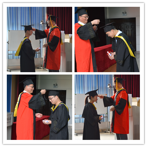 紧接着,教师代表王建平老师发表讲话,王老师回顾了四年来学校的变化以及同学们的成长历程,同时提出了七点建议与所有毕业生共勉,最后表达了老师们对学生的关心和殷切希望。随后,毕业生代表孙林发言,深切的表达了对母校、老师、父母的感激之情和即将踏入社会的坚定信心。毕业典礼的最后,由院长许德章老师为毕业生代表依次扶正流苏,并拍照留念,背景音乐将典礼气氛推向高潮。