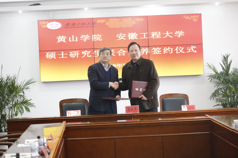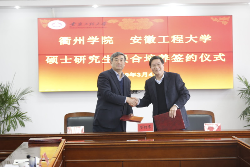 最后,王绍武、徐须实、胡善风分别代表安徽工程大学、衢州学院和黄山学院在联合培养硕士研究生协议书上签字。