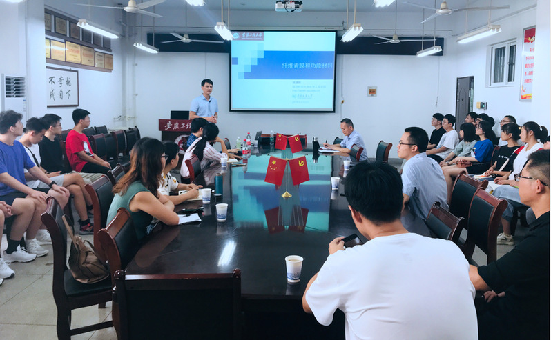 姚建峰详细介绍了其课题组在金属有机骨架气体分离膜、金属有机骨架的合成方法和生物质资源催化转化等方面的研究成果。报告指出以棉短绒纤维素为原料,利用羟基-金属离子配位作用可制备出具备抗冻、热可逆、导电及可3D打印等特点的纤维素基水凝胶材料。目前该制备方法具备简单、环保、成本低廉等特点,有望用于推动纤维素基水凝胶在极端低温环境中的实际应用。报告结束后,与会师生们结合自己的研究领域,与姚建峰教授进行了深入交流。现场学术气氛浓厚,广大师生受益匪浅。