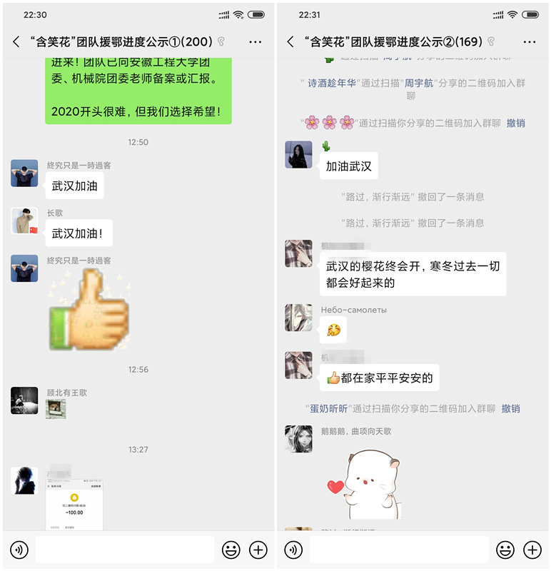 “含笑花”志愿者团队队长周宇航说:疫病无情人有情,希望能用我们的这份爱心,为湖北的抗击疫情工作贡献了一份来自安工程青年学子的力量。疫情什么时候缓解,我们的募捐行动就什么时候结束!武汉加油!中国加油!