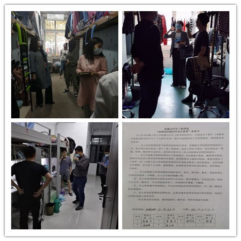 5月10日当天,学院组织青年教师和辅导员成立党员先锋队积极投身学校防疫服务工作,为首批返校学生测体温、检查健康码。毕业班辅导员提前清点防疫物资,安排专员领取,确保物资领取工作安全有序。学院领导带队分四组前往学生宿舍,实地了解返校学生们的健康状况、考研就业情况,同时要求学生们认真阅读签署“6165金沙总站官方入口疫情防控期间毕业生管理承诺书”,严格遵守学校疫情防控规定,注意自我防护,安心学习生活。