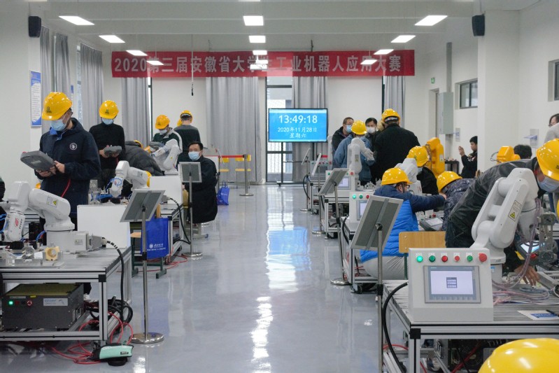 此次大赛旨在贯彻落实国务院、安徽省政府关于深化高等学校创新创业教育改革的有关要求,打造安徽省工业机器人应用技能交流平台,服务于机器人领域人才培养,推动安徽省机器人产业升级。同时,该项赛事为“赛、学、研”教育教学改革提供了一个良好的平台,为全省高校老师和同学提供一个相互交流和学习的平台。经过两天的激烈角逐,4支代表队荣获一等奖,9支代表队荣获二等奖,12支代表队荣获三等奖。