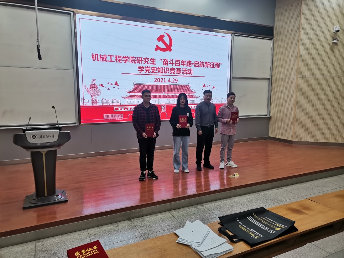 此次竞赛活动包括党史知识测试基础、“党史我来讲”党史再现、“永远跟党走,信仰代代传”重温入党誓词三个环节,竞赛采取了团队报名方式。党史知识竞赛活动中,参赛团队成员们通过一次临场测试展现了扎实的党史基础,并且在抢答环节中面对颇具难度的提问踊跃作答。其后在“党史我来讲”党史再现环节中,每个团队分别派出了各自代表来讲述了自己所了解的党史故事,同学们均在所讲述的党史中获益良多,表示在学习生活工作中,会以更高、更严的标准来要求自己。综合参赛各组在党史知识测试基础环节以及“党史我来讲”党史再现环节的表现,经5名师生评委认真评审,共评出一等奖1项、二等奖2项、三等奖3项、优秀奖3项。