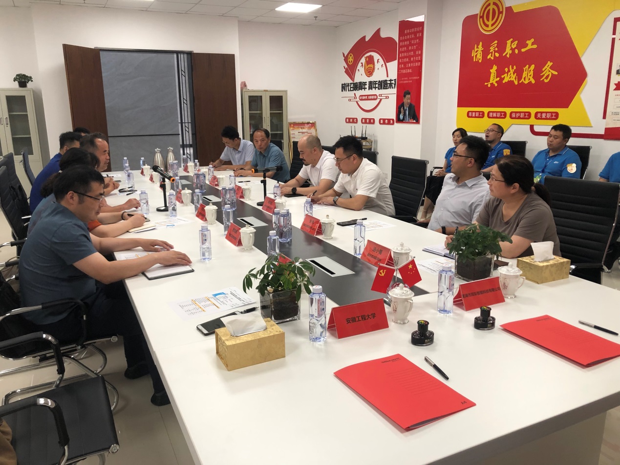 7月22日,我院(人工智能学院)与芜湖市双彩智能科技有限公司(以下简称“芜湖双彩”)在南陵县高新技术开发区举行校企合作对接活动,活动内容包括参观芜湖双彩公司生产现场、技术交流、合作框架协议签署、大学生实习实训基地挂牌等。我院党委书记伊长文、副院长王建平、党委副书记李文江及相关专业教授和博士参加了对话活动。