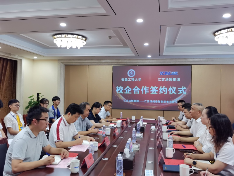 为做好2022届毕业生就业工作,巩固就业市场,加强校企交流,9月25日,我院(人工智能学院)党委书记伊长文、党委副书记李文江、副院长江本赤、智能制造系主任刘玉飞、教学秘书方明、毕业班辅导员程雷一行赴常州市江苏汤姆集团就人才培养与就业基地合作建设进行洽谈,并回访2021届毕业生。