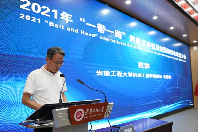 9月27日,由机械工程学院(人工智能学院)、芜湖市轨道交通有限公司、芜湖市标准化研究院、中车浦镇庞巴迪运输系统有限公司等联合承办的2021年“一带一路”跨座式单轨系统国际标准联盟(以下简称“联盟”)大会在安徽工程大学国际工程师学院隆重召开。安徽省市场监管局标准化处处长温家铨,“一带一路”区域标准化研究中心执行主任乐为,芜湖经济技术开发区管委办公室主任何学东,芜湖市市场监管局二级调研员王劲松,芜湖市轨道交通有限公司副总经理缪正祥,中车浦镇庞巴迪运输系统有限公司总经理Romuald Ponte,党总支书记、中方总经理徐海大,我院(人工智能学院)院长许德章等和联盟成员单位代表近100余人参加了大会。