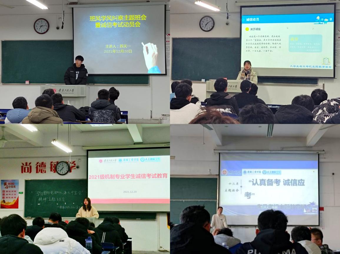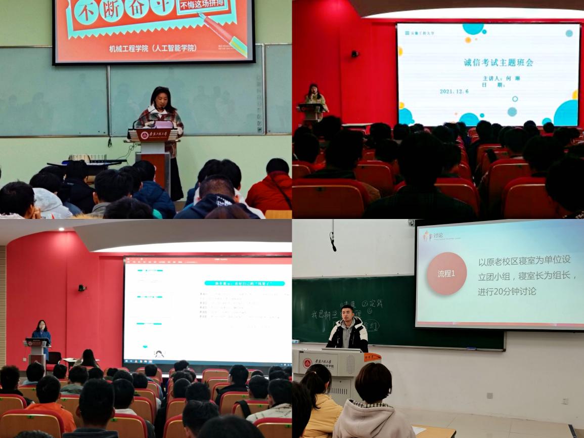期末考试与研究生考试将至,我院(人工智能学院)全体辅导员结合各年级工作实际顺利完成12月份主题班会,重点围绕党史学习教育、诚信考试教育、毕业生考研就业指导、疫情防控与安全教育等主题开展教育宣传。