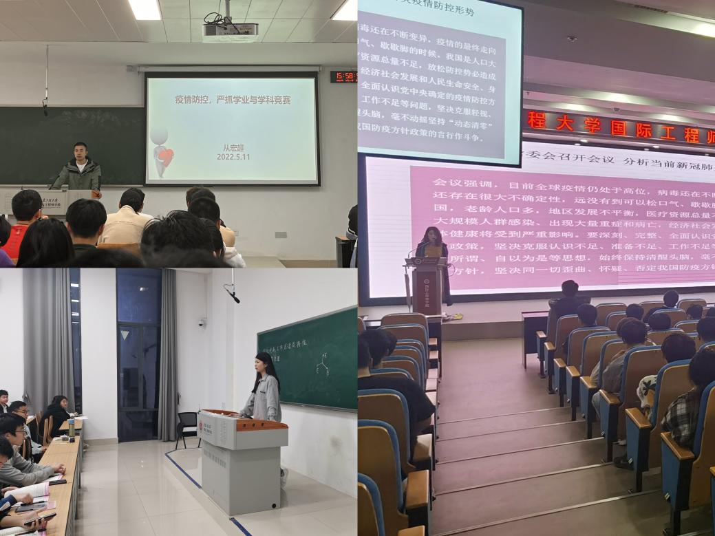 学校自5月6日有序解除校园封闭管理,转入常态化疫情防控模式以来,为进一步筑牢疫情防控防线,我院(人工智能学院)辅导员组织召开新冠肺炎疫情防控主题班会,重点学习了5月5日中央政治局常委会会议精神和习近平总书记系列讲话精神,对五月份学风建设、宿舍卫生、考研与就业指导、心理健康教育等重点工作进行部署。