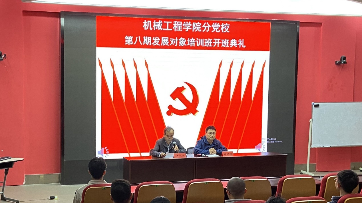 为提高党员发展对象的政治理论水平和党性修养,切实保证新发展党员质量。11月14日晚,我院在国际工程师校区图文中心小报告厅举行第八期发展对象培训班开班典礼,学院党委书记伊长文,培训班班主任许典舟和全体学员出席。典礼由许典舟主持。