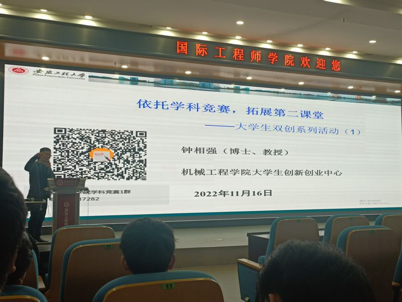 为鼓励广大学生积极参与学科竞赛,进一步增强大学生科技创新意识,以赛促学,11月16日下午,我院在国际工程师学院大报告厅召开学科竞赛动员会。动员会由学院副院长潘家保主持,学院大学生创新创业中心主任钟相强教授担任主讲,2020级和2021级百余名学生参加了此次活动。