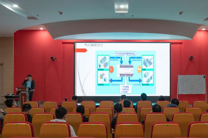 会上,秦广虎强调了本次宣讲会的重要意义,鼓励同学们利用好学院提供的条件,积极参加学科竞赛,提升学科素养和综合能力。杨春来结合自身开展学科竞赛的经验,从大赛的定位、理念、发展历史、赛项设置、竞赛规则、参赛流程及PLC编程使用等方面对中国智能制造挑战赛进行详细介绍。国奖获得者孙阿豪分享了参加数控数字化双胞胎比赛的经验,鼓励同学们主动学习,提升读图和编写加工程序能力,注重团队合作,共同进步。钟相强号召同学们积极参赛,在实践中学习,在大赛中成长。