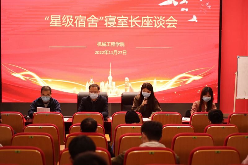 为激发寝室长在学生自主管理中的作用,落实学校“三全六专”育人工作,加快构建“安全卫生、学风优良、和谐文明”的宿舍新态,彰显“星级宿舍”的榜样示范效应,11月27日,我院在国际工程师学院小报告厅组织召开了“星级宿舍”寝室长座谈会。机械工程学院党委副书记秦广虎、部分辅导员以及全体“星级宿舍”寝室长参会。会议由辅导员何琳主持。