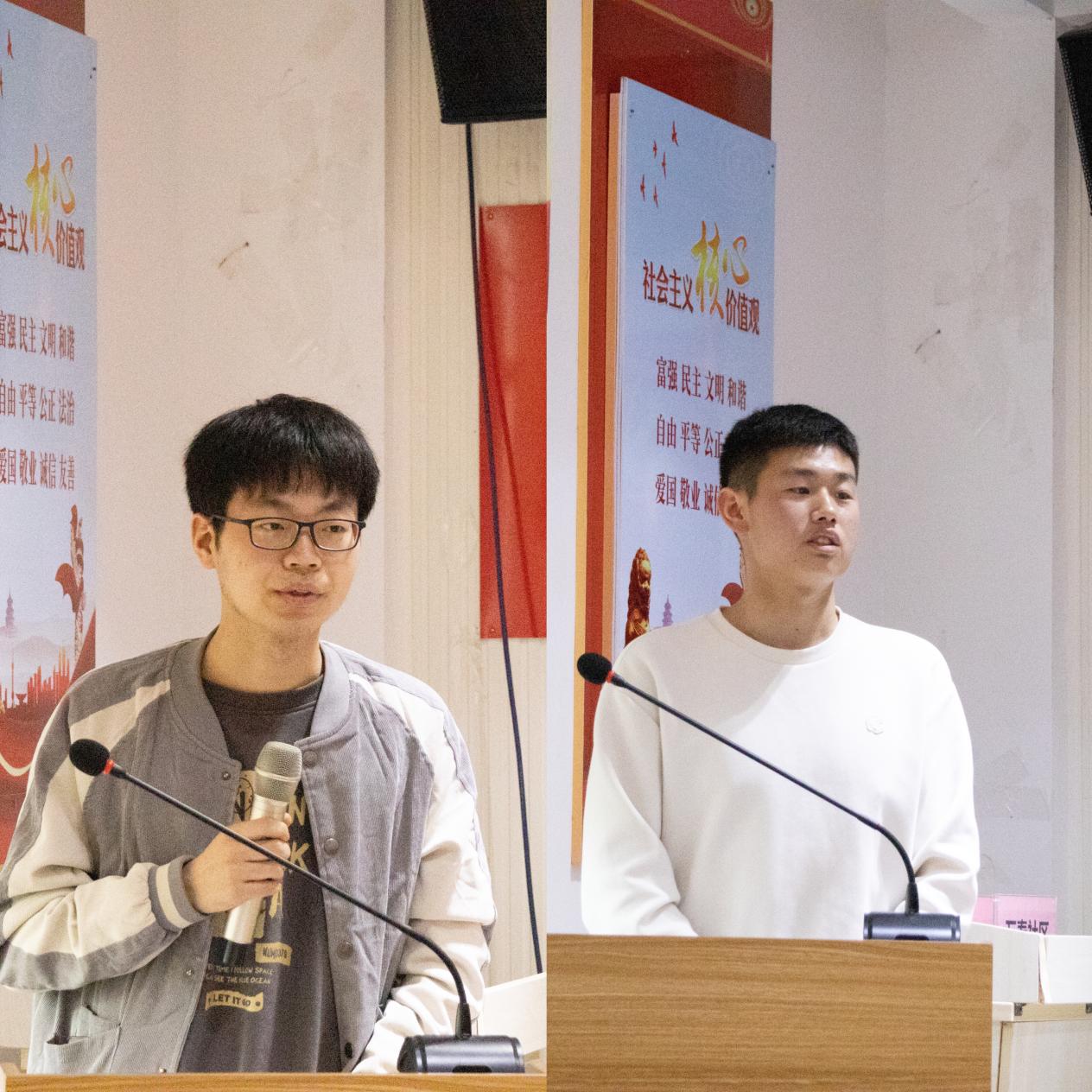 机制215钱志强、机电211张哲彬作为志愿者代表先后进行发言。他们分享了自己参与志愿服务活动的经历、感受、收获,表示会坚定志愿服务初心,践行志愿服务理念,为传承志愿服务精神、建设美好社区和美丽校园贡献青春力量。