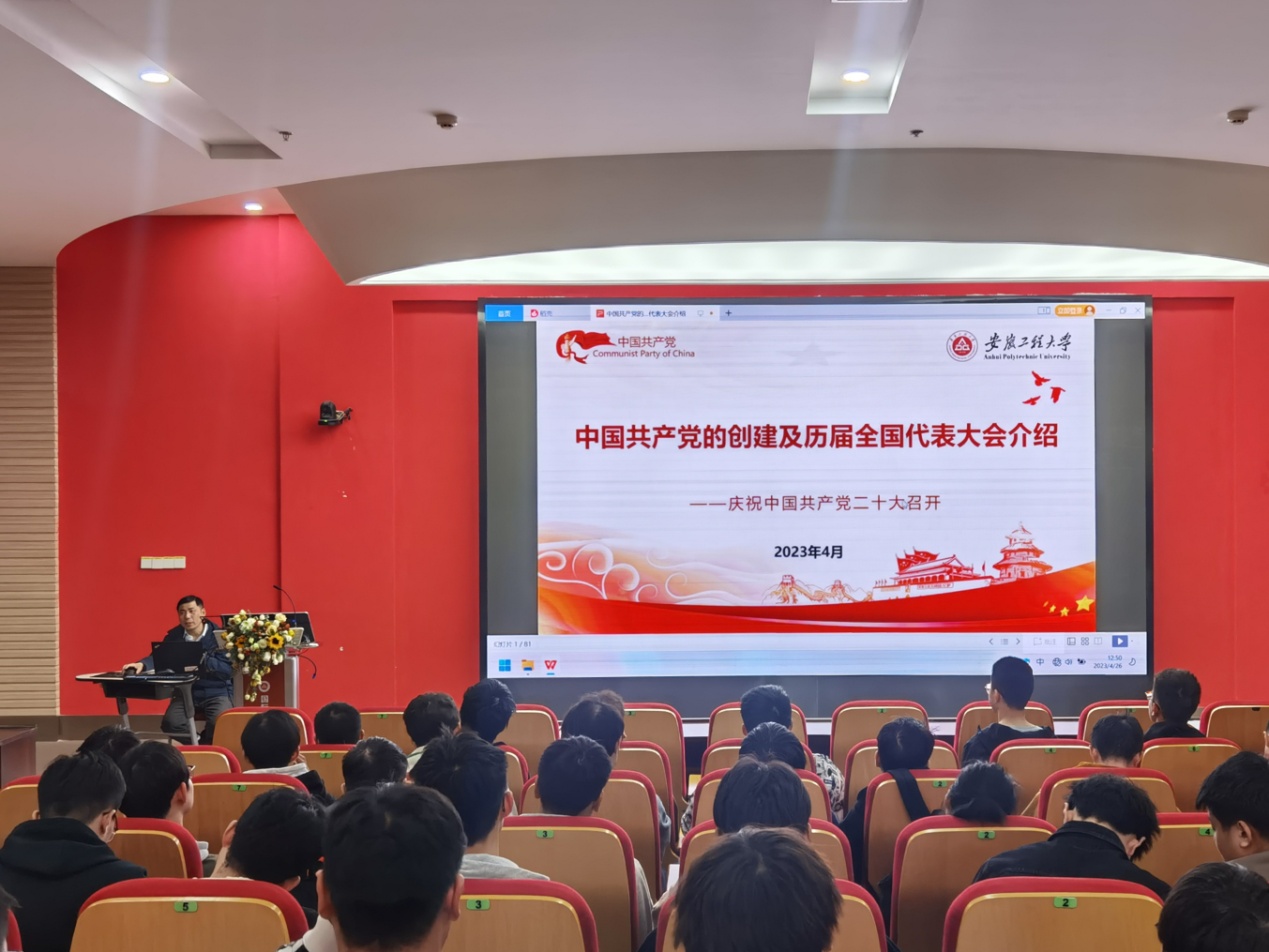 为全面贯彻党的二十大精神,落实学校“三抓”“党建品牌活动推广月”工作要求,推动学生党员“正”起来,根据学院党建品牌建设活动安排,4月26日,我院在国际工程师学院小报告厅举办“党音嘹亮”大讲堂活动,邀请马克思主义学院概论教研部主任金承志副教授作《中国共产党的创建及历次全国代表大会介绍》专题讲座。学院党委副书记秦广虎、组织员齐尚晓、大讲堂负责人时慕天、学生党员100余人参会。讲座由齐尚晓主持。