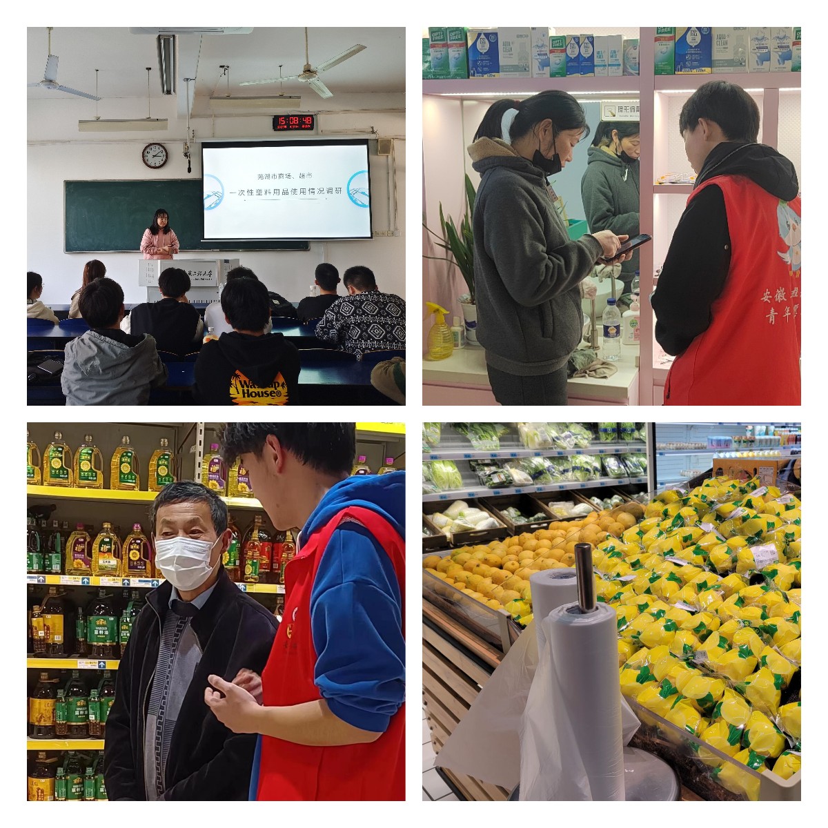 助力实现“碳达峰”和“碳中和”伟大目标,引导广大青年朋友以实际行动共建文明城市,让“减塑”成为一种生活习惯和时尚潮流,419-428,我院四色依米花环保团队参加了芜湖市生态环境保护志愿者协会的培训,并以“评估限塑令在芜湖市的实施情况”为调查目标,开展了为期10的“减塑”调研活动