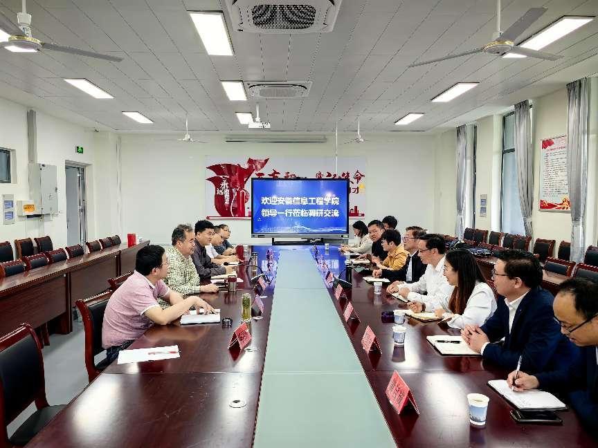 5月17日,安徽信息工程学院我院院长田启华一行到我院开展调研交流,学院党委书记伊长文、院长王建平等党政领导和管理人员参加现场调研和座谈交流。