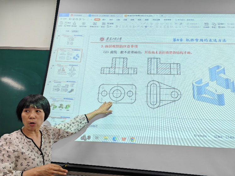 活动邀请到曾获全国高校图学与机械课程示范教学与创新教学法观摩竞赛二等奖的资深教师石平和青年教师王俊,通过现场展示不少于20分钟的真实教学环节和场景,全面呈现不同教师的教学方法和教学技巧。展示过程中,台下教师认真聆听,主动总结,对照反思。