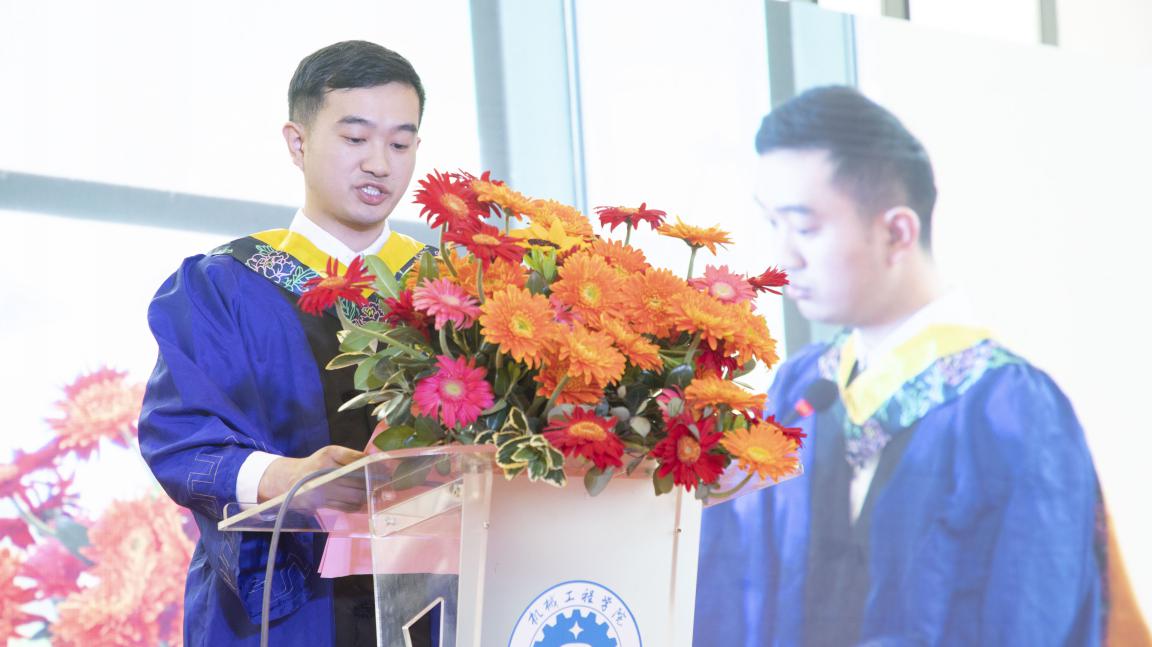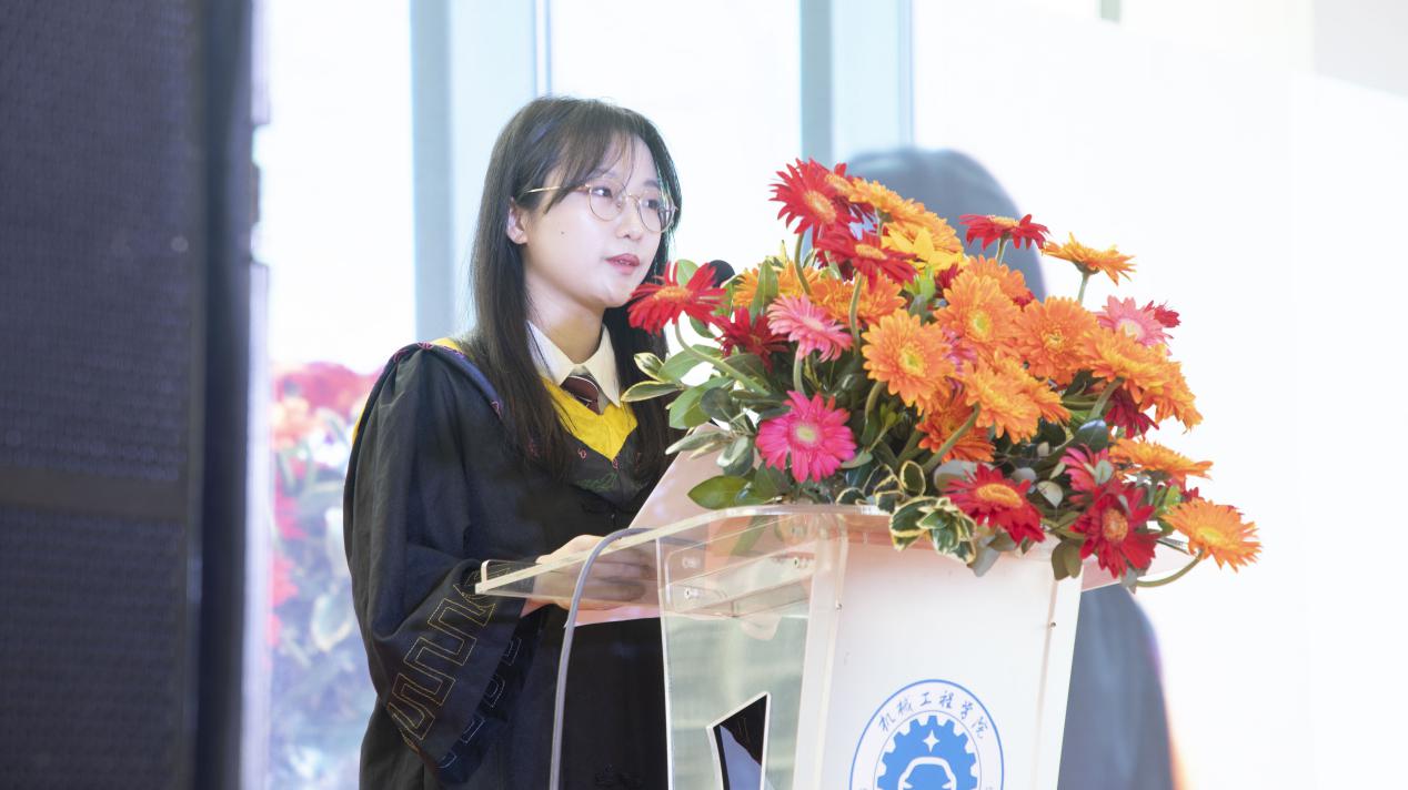 研20齐恒、车辆191余芳琪两位分别作为研究生、本科生代表发言。他们表达了对于母校培养的感恩之情,分享了在校期间的成长经历与收获,表示会牢记“尚德敏学 唯实惟新”的校训精神,脚踏实地、默默耕耘,不负韶华、不负期待、不负时代。