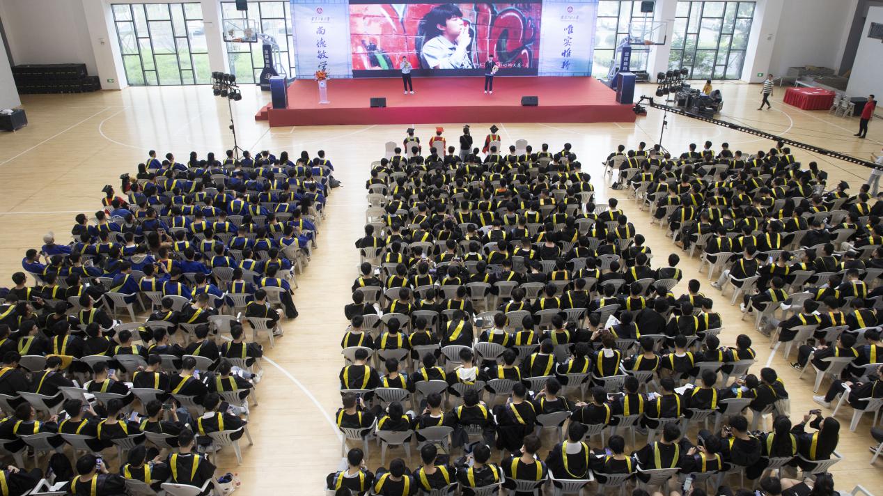 大屏幕中循环播放了为毕业生精心制作的系列视频,待现场人员落座,轻松欢快的音乐响起,典礼缓缓拉开序幕。歌曲《那些年》饱含了毕业生对青春的怀念、对未来的希冀、对同窗的祝福。