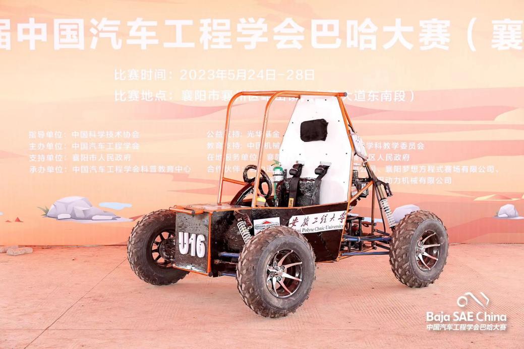 中国汽车工程学会巴哈大赛是由中国汽车工程学会主办,竞赛包括多种静态与动态项目测试。其中,静态项目包括技术检查、赛车设计、成本与制造、商业营销等,动态项目包括牵引力测试、操控性测试、耐力测试等。大赛是以培养高素质技术技能人才为核心的竞赛平台,致力于为汽车产业输送更多复合型人才,促进汽车运动文化产业的蓬勃发展。2023年4月,同学们在接到赛事通知后,几乎每晚都在车队工作室鏖战到凌晨,成功解决了赛车在制动、悬架以及转向方面存在的不足,让赛车能够以最佳的状态迎接比赛。本次赛事的动态项目均在黄土地质举行,加之连日阴雨,赛道内的淤泥深度一度超过100mm,赛车行进难度大大增加,对车手的体能消耗、赛车的可靠性和通过性以及参赛队员们的意志品质都是一次严峻的考验。比赛结束,车队成员返校后又立即投入到了2023年度巴哈大赛赛车设计制造和改良的紧张任务中。