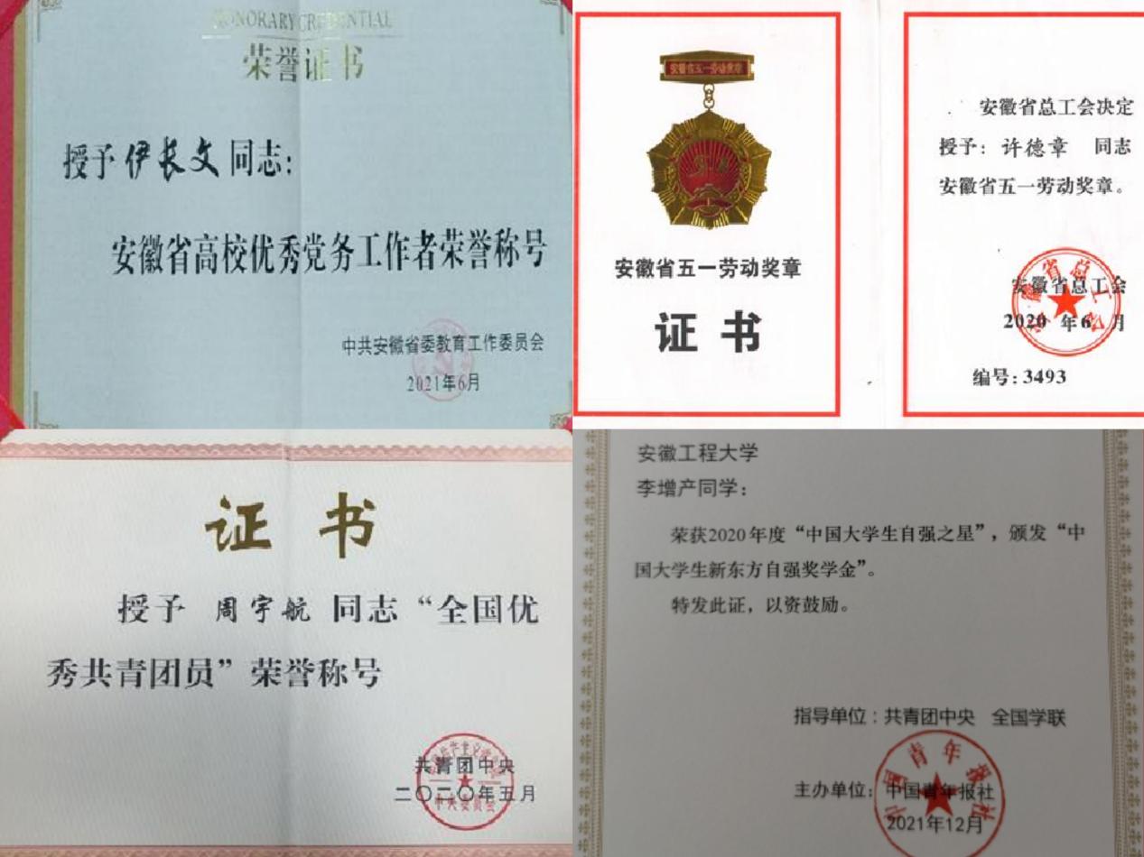 “立德树人”筑根基,示范引领涵新风。学院党委坚持以“立德树人”为基本遵循,把培养选树先进典型作为重要抓手,打造了一批立得住、叫得响、过得硬、传得开的典型群体,营造起学先进、赶先进、争先进的浓厚氛围。近三来,教师党员获批校级以上党建与思想政治工作项目二十余项,第十四届全国高校心理委员工作研讨会论文二等奖1项,第一届全国高校思想政治工作“金微课”优秀奖1项,获安徽省委教育工委“优秀党务工作者”荣誉称号1人、安徽省“五一”劳动奖章1人、省“教科文卫体系统工会工作先进个人”1人、获“省特支计划”1项、青年皖江学者1人、省115产业创新团队1支及带头人1名、省战略性新兴产业领军人才2名。学生党员荣获“安徽省十佳百优大学生”荣誉称号2人、“安徽省大学生年度人物提名”荣誉称号1人、“安徽省研究生党员标兵”荣誉称号1人、“中国大学生自强之星”荣誉称号1人、“全国优秀共青团员”荣誉称号1人等。
