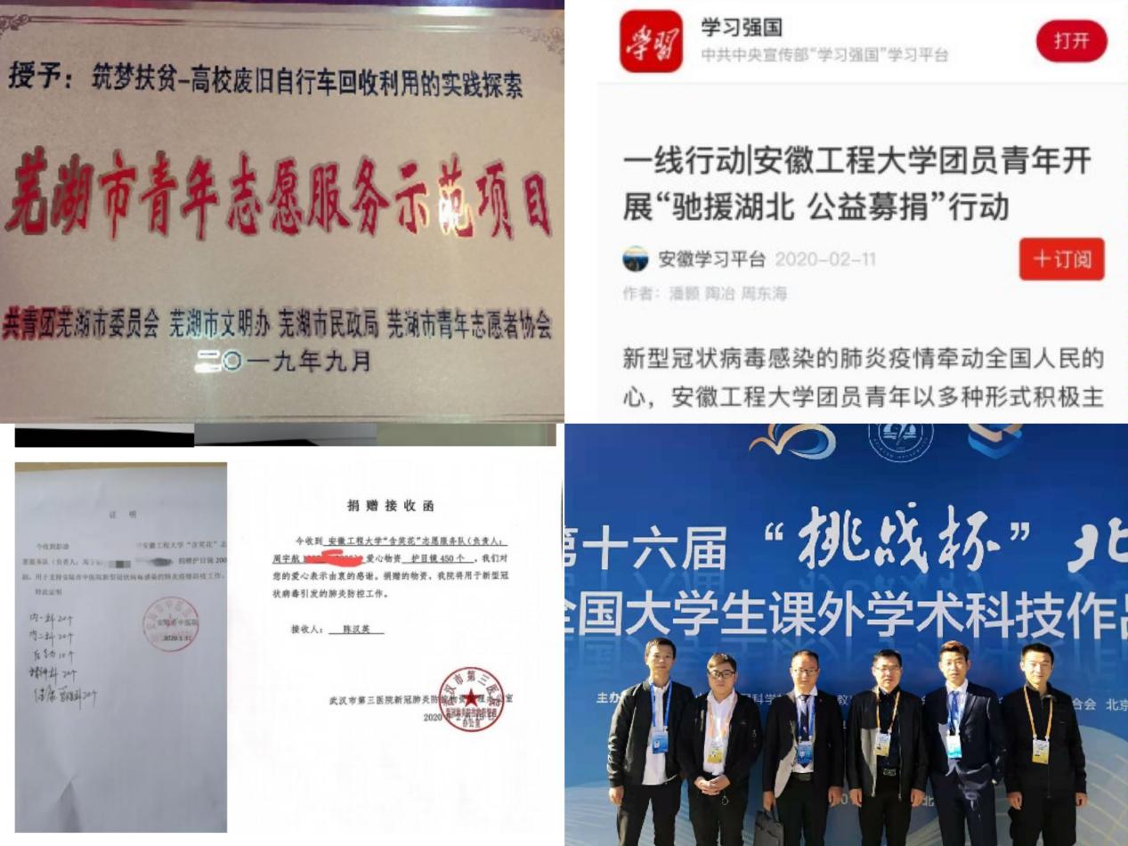 师生共建办实事,志愿服务作新为。学院党委坚持“党建引领+志愿服务”工作模式,形成“党建带发展,合力育新人”的良好发展格局。围绕筑牢师生服务“地基石”、争做攻坚克难“急先锋”、当好师生群众“主心骨”,积极打造服务型、创新型、联动型党员志愿服务团队。一方面,发起并组织青年博士教师党员成立青年博士导师科教竞赛志愿服务团队,聚焦落实“党建引领+科竞融合”协同育人,积极探索“党团学”一体化建设思路,将志愿服务与党性培育、新生前沿专业知识认知等多种要素进行有机联系,从整体性视角出发,由要素剥离、分隔向贯通、融合转变,盘活系统化、体系化、全方位的综合育人实效。另一方面,由学生党员团队发起组建“含笑花”“四色依米花”等示范志愿服务团队,亮明党员身份、划定党员责任田、建立党员示范岗、推进我为师生办实事。其中,含笑花志愿服务团队基于专业特色和社会热点现象和问题,先后组织“公益自行车捐赠”“驰援湖北,公益募捐”等公益活动200余次,累计向贫困地区和灾区捐赠60万余元的资金和物资,先后收到50多家单位发来的感谢信,事迹被中国青年网、学习强国、安徽教育网、安徽日报等媒体报道。