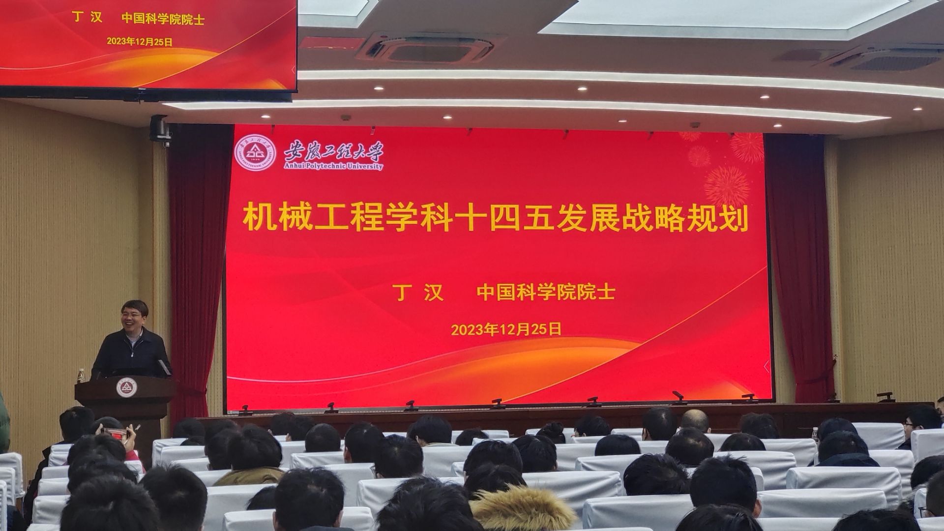 12月25日,中国科学院院士、华中科技大学校学术委员会主任、国家数字化设计与制造创新中心主任丁汉教授一行应邀来校指导学科建设并做学术报告。校党委副书记、校长卢平,校党委常委、副校长凤权,研究生部、科技处、我院及人工智能学院负责人,教师代表、机械学科全体研究生参加了活动。