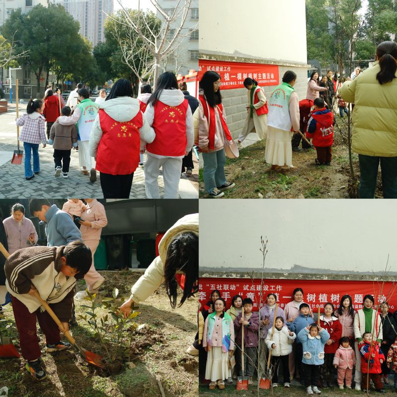 活动开始前,志愿者们齐聚万春社区党群服务中心二楼,在工作人员的指导下有序开展场地布置、活动签到、游戏互动等工作;活动现场,志愿者们各司其职、认真负责,在“健康她时光·守护她力量”主题讲座环节,为前来参加活动的女性居民提供指引和咨询服务,在“童商同议·爱的告白”献礼环节,精心指导小朋友们制作手工礼物,在“大手牵小手·‘童’植一棵树”植树环节,和小朋友们一起挖坑、定植、浇水,共同将木兰和栀子花种在社区空地。现场气氛热烈,欢声笑语不断。