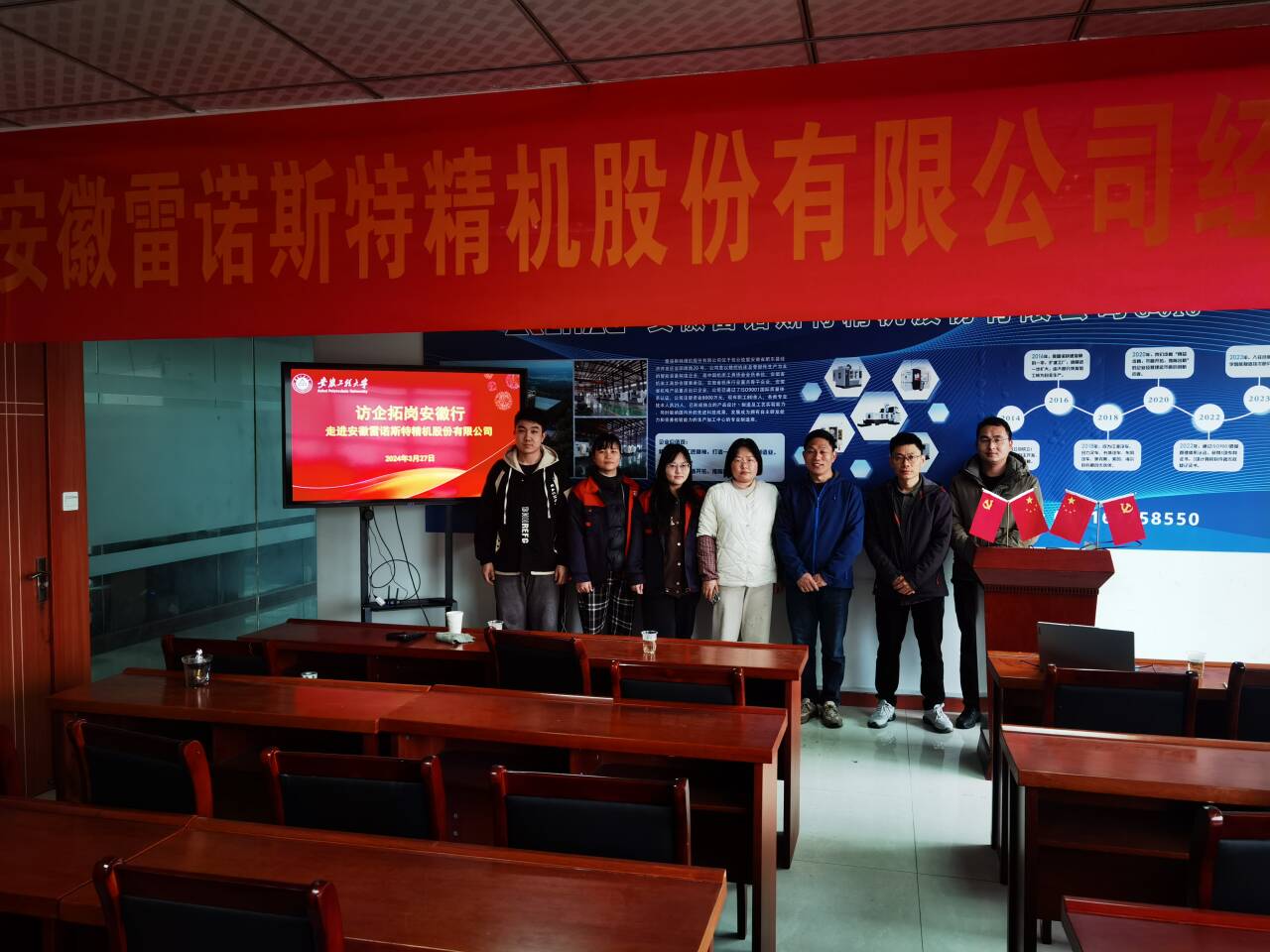 安徽雷诺斯特精机股份有限公司是以数控机床及零部件生产为主的装备制造企业,具有近二十年机械生产的历史,已形成独立的产品设计、制造及工艺实验能力。王建彬感谢企业的热情接待,并详细介绍了学院发展历程、学科专业建设及毕业生情况。双方就产教融合、学生实习实训及毕业生就业进行了充分交流,达成初步合作意向。我院历届部分在公司发展校友参加了对接会。