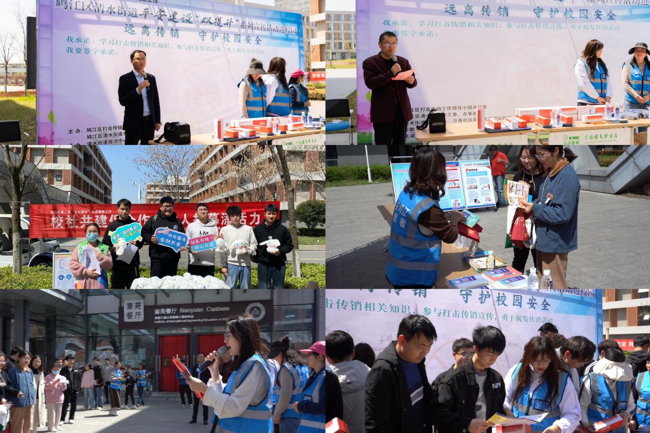 启动仪式上,6165金沙总站官方入口党委副书记秦广虎结合安徽工程大学“三全六专”育人实践要求,强调了平安校园建设的重要性、校地安全共建的必要性,感谢属地政府相关单位对校园安全工作的支持,希望同学们身体力行、积极主动维护校园安全。清水街道党工委副书记陈祝祥指出,平安校园建设是促进社会和谐发展的必要保证,需要全体师生的共同参与,希望大家能够把安全意识融入思想中、把防范意识刻在骨子里。