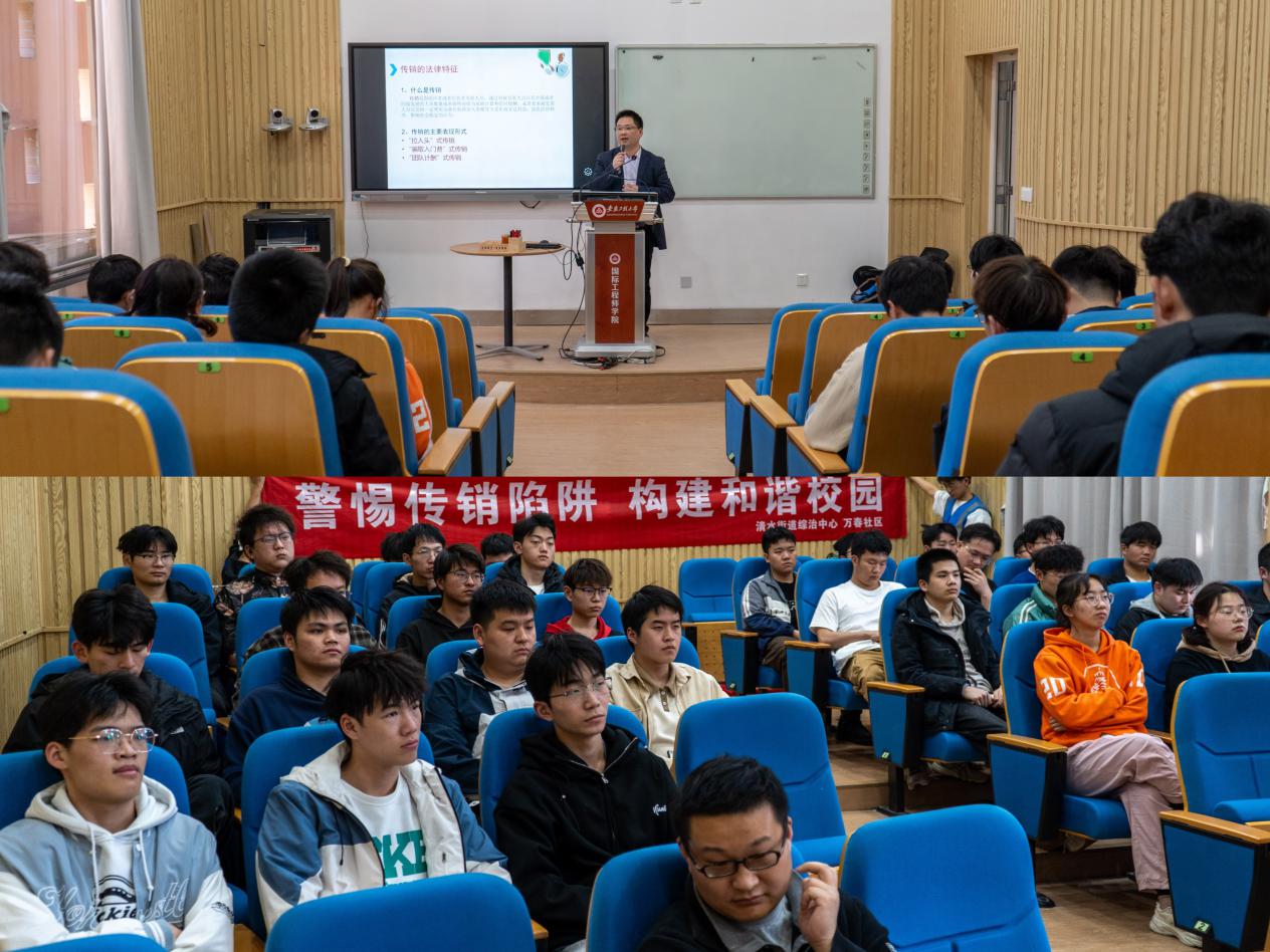 芜湖市市场监督管理局张英祥受邀为学生开展了抵制传销和防诈骗专题讲座。他从真实案例引入,围绕传销、诈骗常见骗局、主要特征、模式类型、应对方法等方面进行了详细讲解,希望同学们要加强自我保护,同学间要相互提醒,自觉抵制传销,提高防诈意识,守好自己的“钱袋子”。