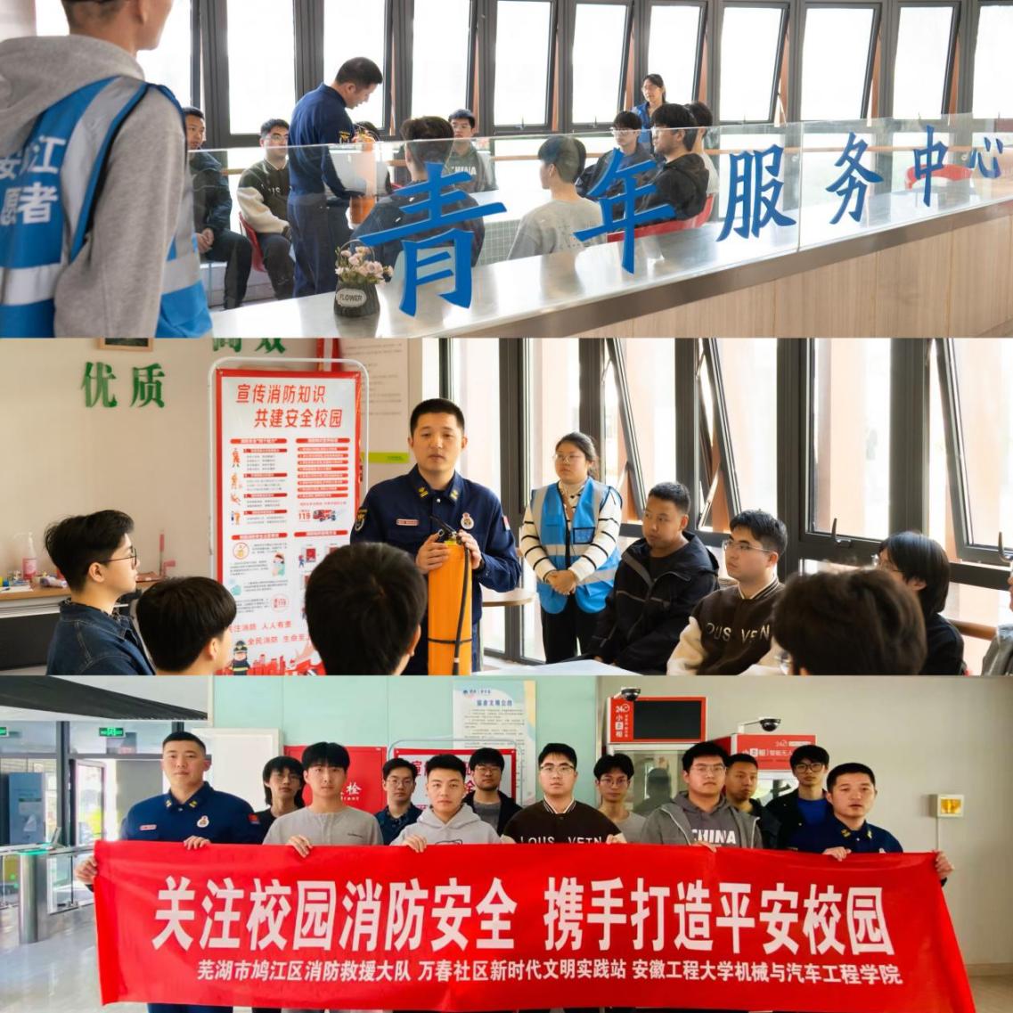 为提高学生安全防范意识,筑牢校园安全防线,3月29日,6165金沙总站官方入口联合芜湖市鸠江区委政法委开展平安校园建设。鸠江区消防救援大队、清水街道党工委负责人、万春社区负责人、社区志愿者和国际工程师学院师生代表参加了本次活动。