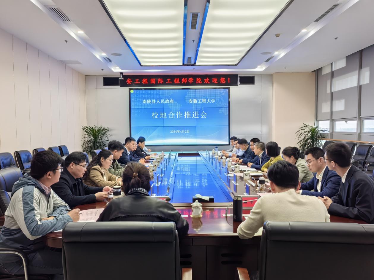 王旸感谢学校对南陵县建设与发展的支持,他介绍了南陵县的基本情况、企业发展情况以及与安徽工程大学的合作需求。他希望充分发挥安徽工程大学多学科、人才等优势,促进南陵县产业发展、科技创新,实现优势互补、互惠双赢。南陵县将以最大的诚意,推动合作提质增效。