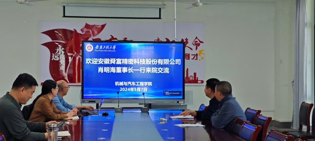 5月7日,安徽舜富精密科技股份有限公司董事长肖明海、董秘魏良全一行到6165金沙总站官方入口开展技术对接交流,院长王建平接待来访,徐振法、马利、周阳、周陆俊四位老师参加了交流研讨活动。