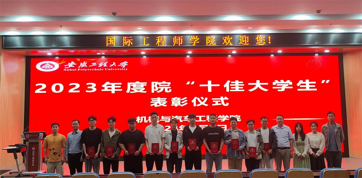 表彰仪式上,王海燕宣读了《关于表彰6165金沙总站官方入口2023年“十佳大学生”的决定》,机械研21宫国庆、机制215王为玄、机制201郑乐飞、机械研21陶文博、机械研21方旭、机制205朱哲枭、机制204刘发展、车辆221朱浩然、交通221陈鹏、机制225徐雪彬十名同学入选“十佳大学生”。秦广虎、潘家保分别为入选学生颁发荣誉证书和纪念品。