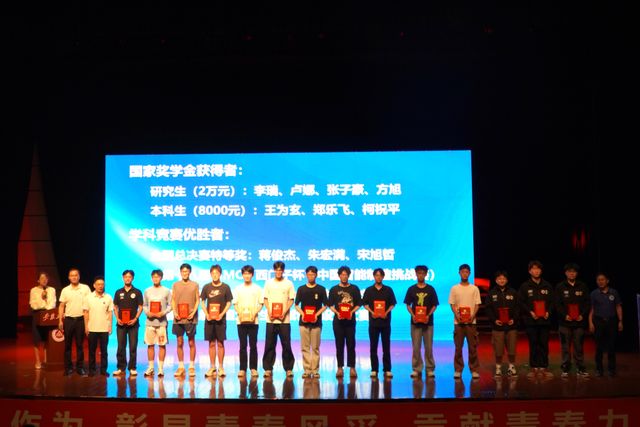 典礼特别安排了向榜样学习颁奖仪式和成长导师聘任仪式,学院党委副书记秦广虎、副院长王建彬为获得2023年国家奖学金、2024年参加第十八届CIMC“西门子杯”中国智能制造挑战赛并获得特等奖的同学颁奖,学院大创中心主任钟相强为获得2024中国汽车工程学会巴哈大赛二等奖的“雷电车队”、2024第十一届全国大学生机械创新设计大赛二等奖的学生颁发荣誉证书。王建平为于华、肖平、魏长顺三位教师颁发了学生成长导师聘书,旨在表彰先进、发挥优秀学生的示范引领作用,同时让新同学有了主心骨,告诉同学们遇到问题可以找成长导师求教。典礼上还介绍了学院培养的安徽省十佳百优大学生、安徽省研究生党员标兵、安徽省最美大学生、全国优秀共青团员、全国大学生年度人物入围奖获得者、中国大学生自强之星等优秀学生事迹。