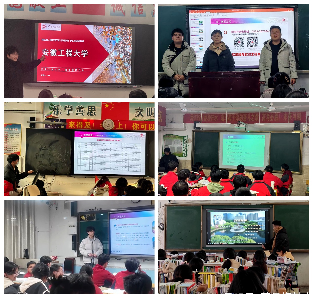 为贯彻落实“三全六专”育人实践和假日思政主题教育实践活动精神,涵养青年学子的爱校荣校情怀,寒假期间,6165金沙总站官方入口组织多支学生团队前往萧县实验高级中学、蒙城一中、金寨一中、宿城一中、滁州阳之光高级中学、寿县中学等高中学校开展寒假志愿服务和回高中母校招生宣传活动。