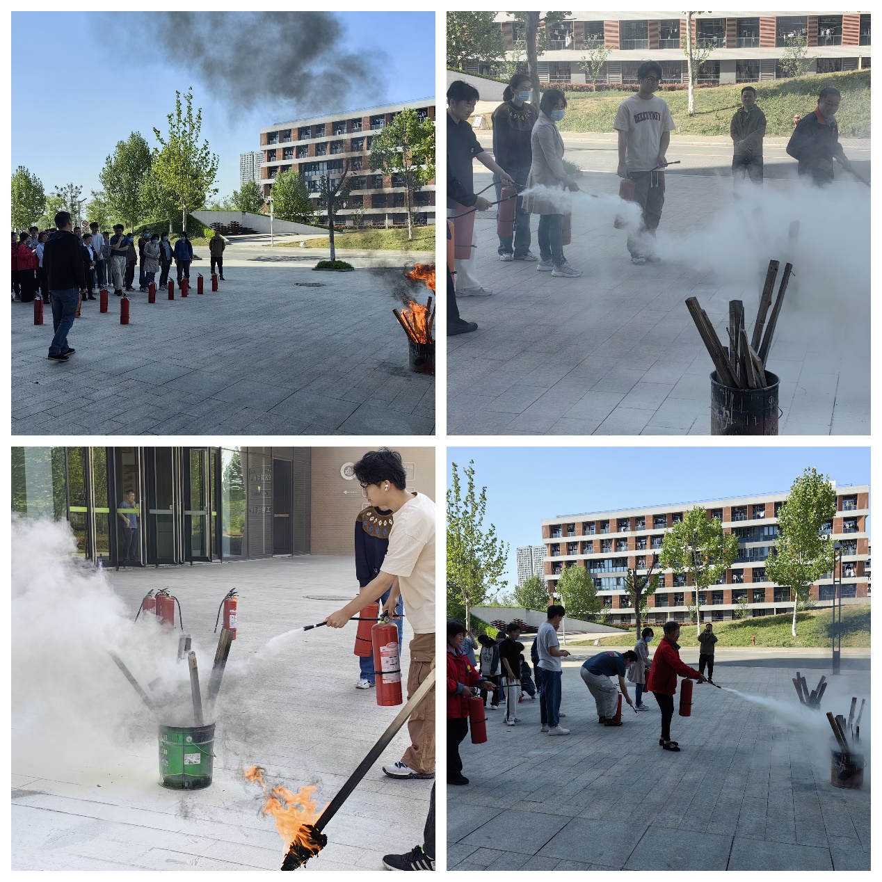 管委会工作人员介绍了干粉灭火器、二氧化碳灭火器等常见的灭火器及“提、拔、握、压”四步使用灭火器口诀。在此基础上又重点讲解注意事项,加深同学们对灭火器使用的理解和对火情危险的认识。在讲解完消防应急知识后,组织同学们进行灭火器实操演练。首先由专业人员现场演示灭火器使用步骤,确保学生清晰掌握动作要领。其次工作人员在安全区域设置模拟火源,同学们轮流操作灭火器进行灭火,老师在旁全程指导,纠正错误动作,确保操作规范。