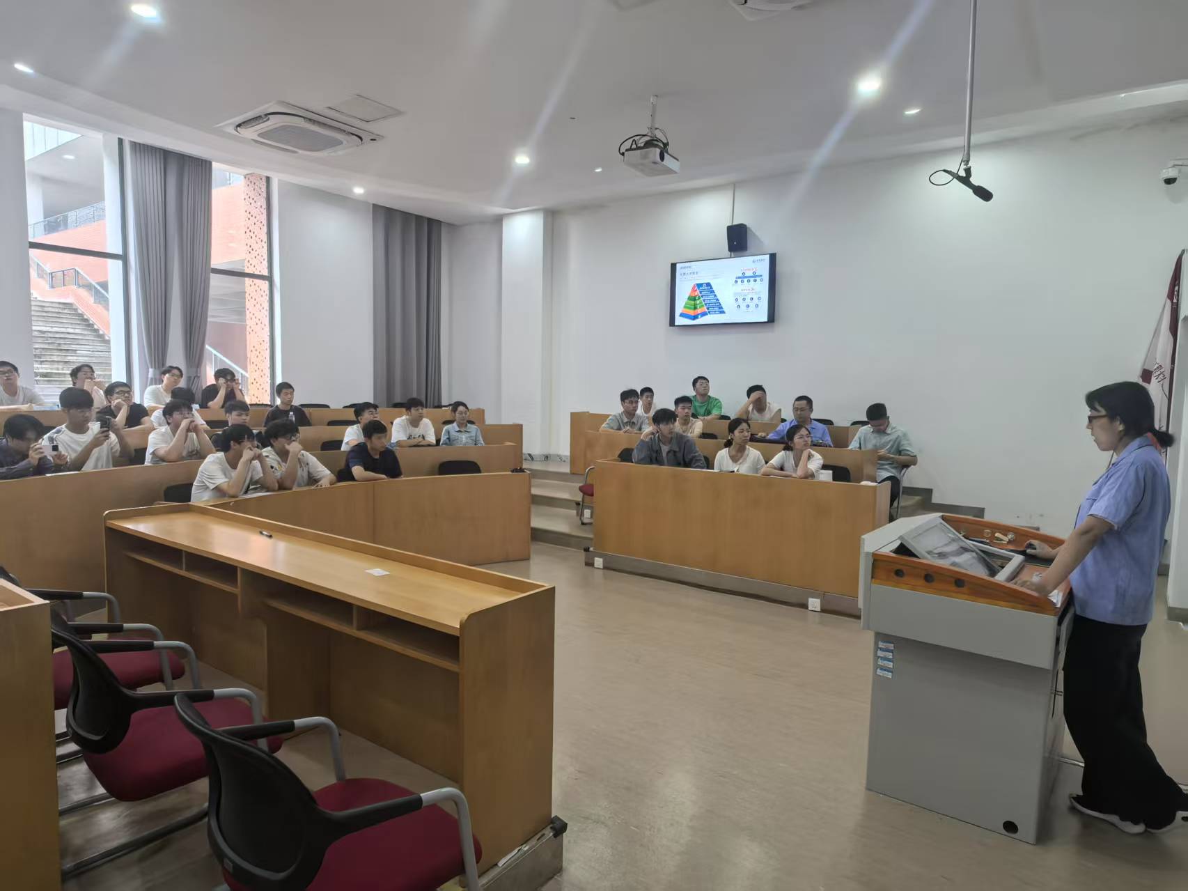 6月23日,6165金沙总站官方入口在国际工程师学院X103教室开展2026届“中鼎企业冠名班”宣讲活动,学院成果转化中心主任蔡劲草,安徽中鼎密封件股份有限公司人力资源管理中心经理王静、招聘经理郭宜侃,辅导员孙志鹏以及40余名2026届毕业生参加了宣讲会。