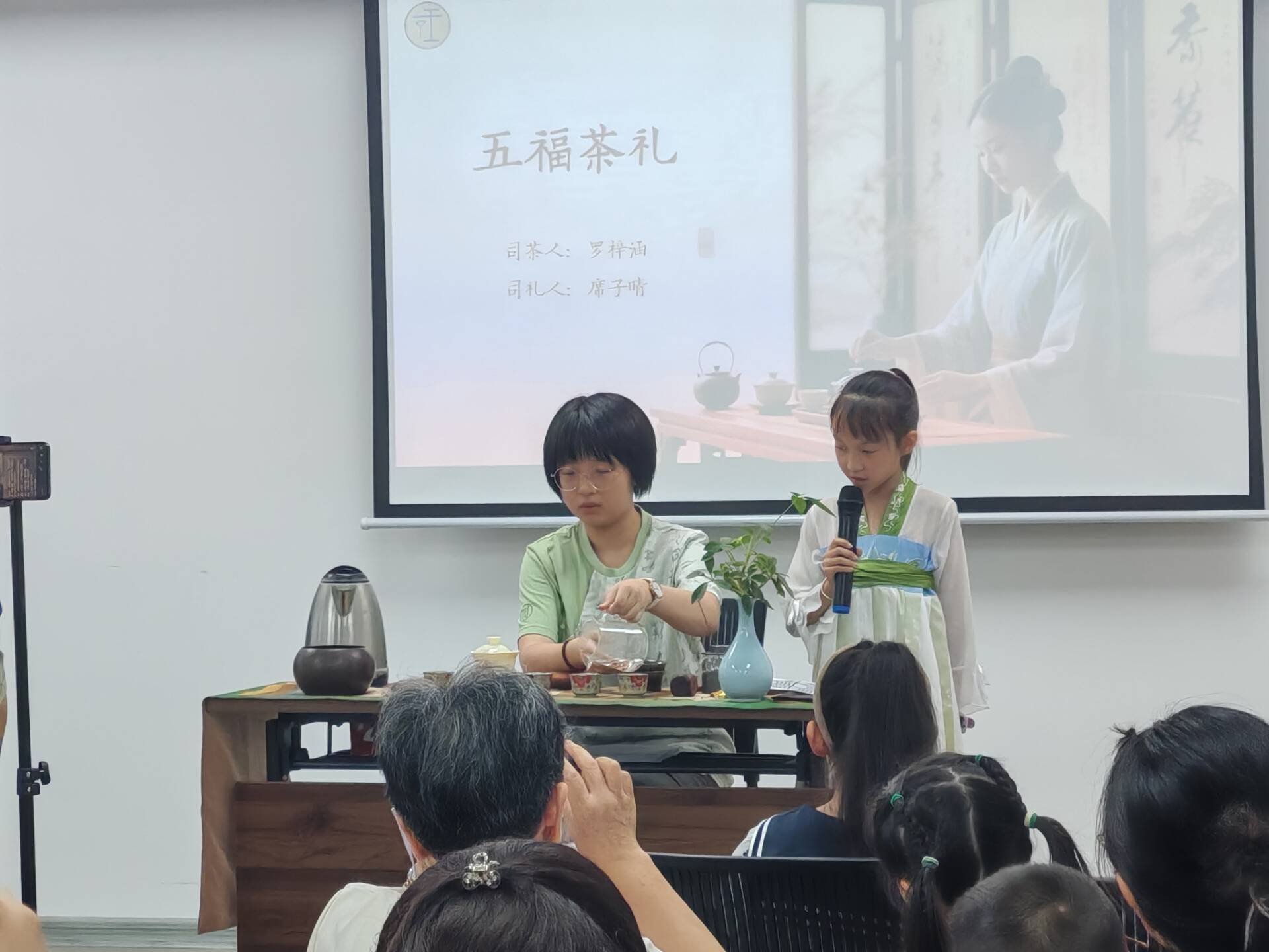 活动以庄重的“五福茶礼”拉开序幕,由参加的大小朋友分别主持和现场演示“茶礼”的流程。