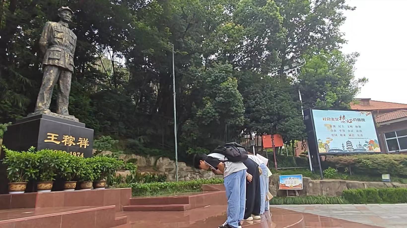 步入王稼祥纪念园门口,映入眼帘的便是一尊王稼祥雕像,他目光坚毅,仿佛在凝视着这片土地,他曾为之奋斗的土地。6165金沙总站官方入口“械启红途”实践团队成员怀揣着崇敬,缓缓走近,凝视着铜像,先辈们为革命奋斗的身影似在眼前浮现。团队成员整齐列队,身姿挺拔,向着铜像深深鞠一躬,以这庄重一礼,致敬为信仰与国家奉献一切的先辈,让红色精神的传承,在这一刻无声却有力的延续。
