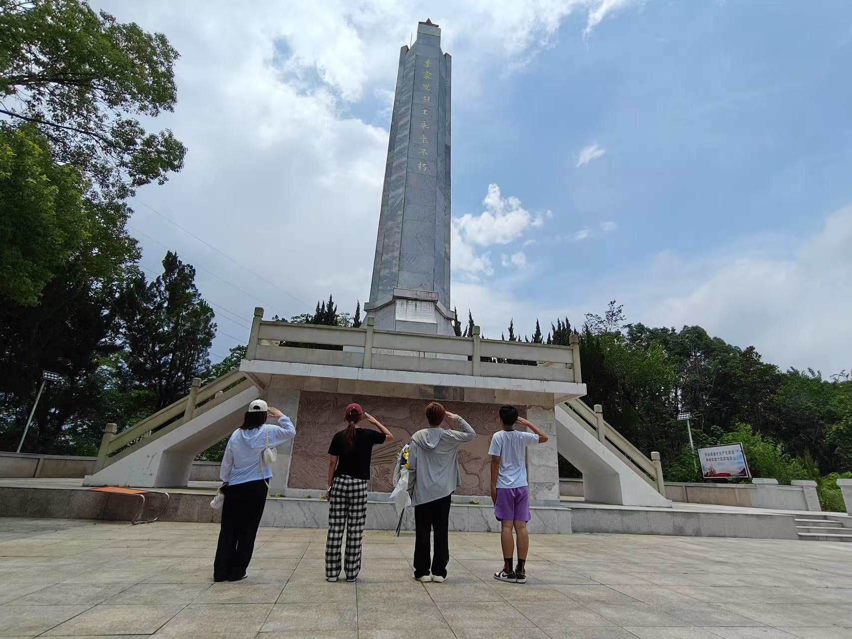 蓝天白云下,李家发烈士纪念碑巍峨矗立。团队成员整齐列队,庄严敬礼,那标准的姿势,是对英雄最诚挚的敬意。团队成员缓缓俯身鞠躬,手中的花束静静摆放,寄托着无尽哀思。团队成员在碑前站立合影,青春身影与纪念碑相互映衬,铭记下这趟传承红色精神、汲取奋进力量的难忘之旅,让烈士的精神,在新一代的胸膛里,继续滚烫 。