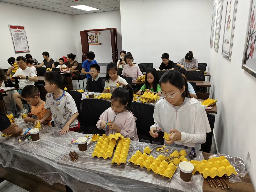 社区工作人员用生动的案例讲解了“变废为宝”的环保意义,告诉孩子们生活中的废旧物品通过创意改造,能焕发新的生命力。志愿者们逐一为小朋友分发颜料、小树枝和提前收集好的废旧鸡蛋托,这些看似普通的“垃圾”,在孩子们眼中瞬间变成了宝贝。
