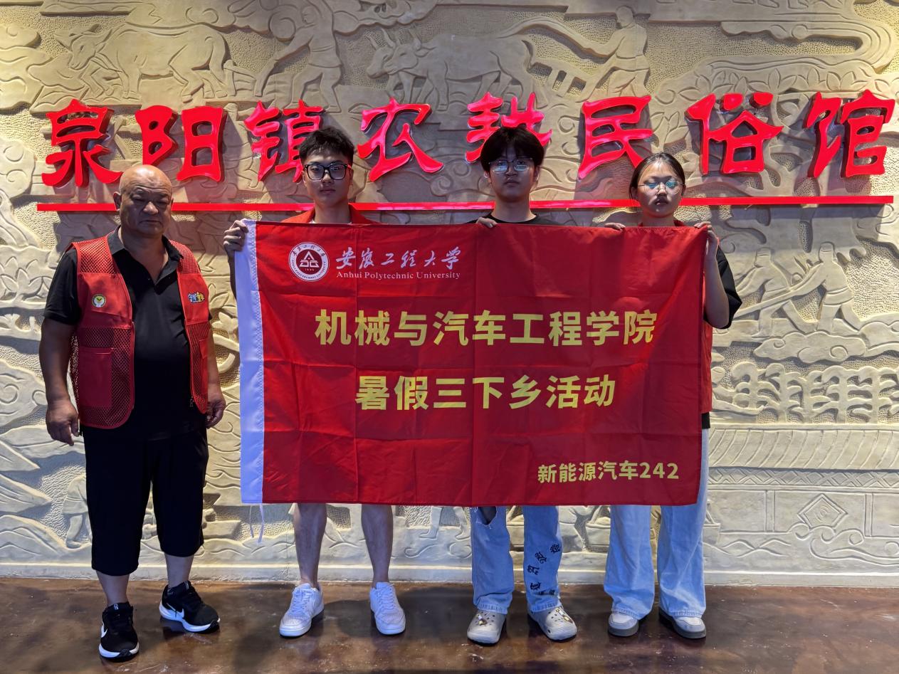暑期来临,为了响应大学生暑期“三下乡”活动,7月5日,安徽工程大学新能源汽车242团队社会实践团队成员前往安徽省界首市泉阳镇集东回族社区农耕民俗馆,开展以“探寻民俗文化,领悟传统瑰宝”为主题的社会实践活动。