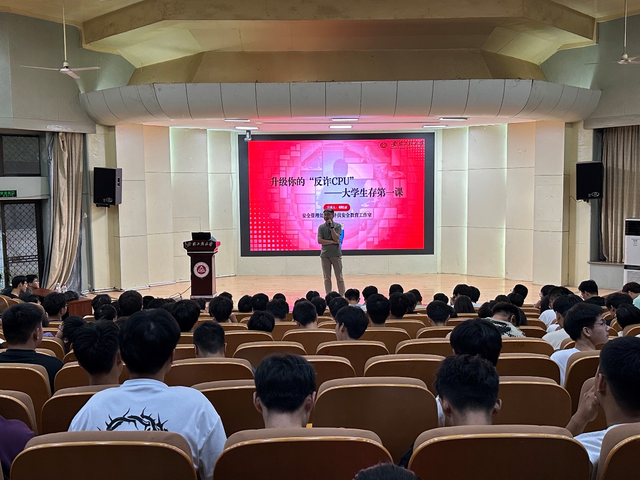 邀请校安全教育工作室骨干成员为全体新生开展了系列主题的安全教育,将国家安全、消防安全、防诈骗、交通安全知识等精准传递至每一位新生心间。